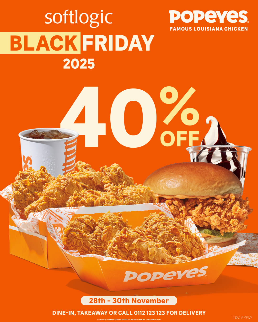 Enjoy a massive 40% OFF on all your crispy Popeyes favourites throughout this three-day Black Friday promotion, running from 28th – 30th November 2025.