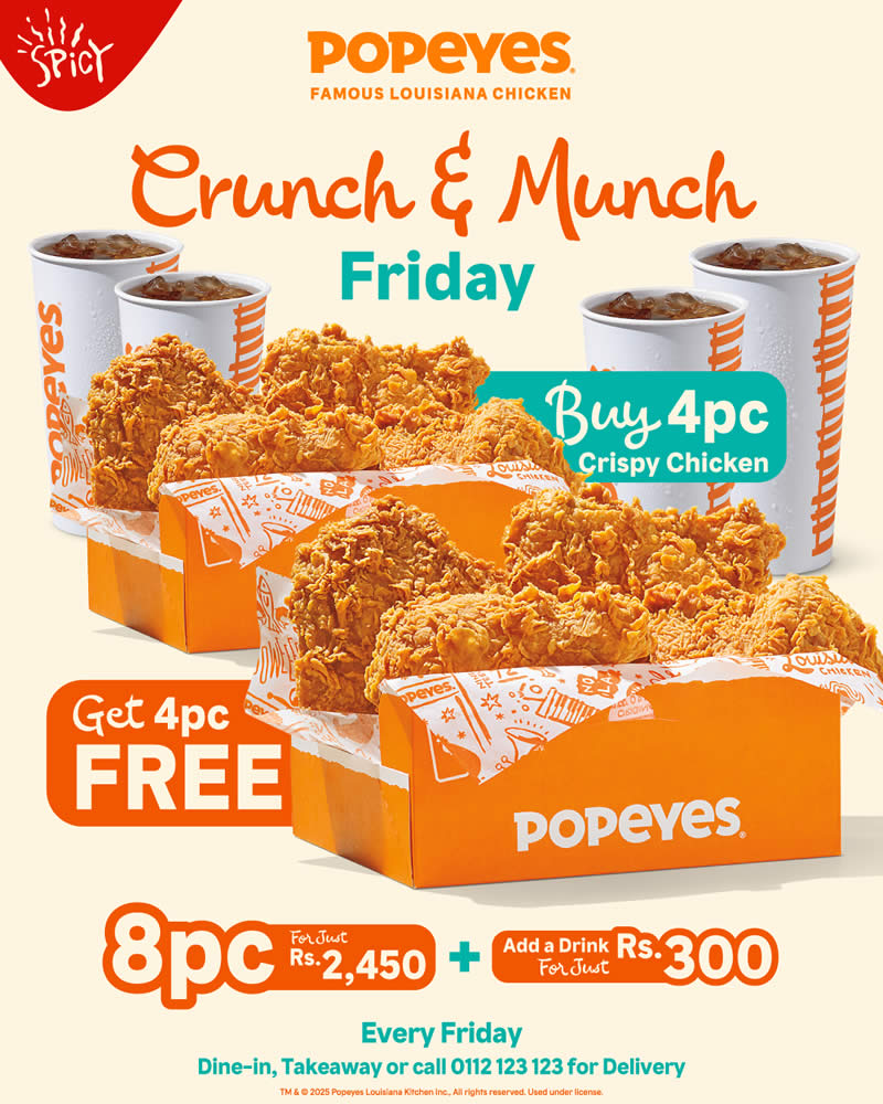 Popeyes Sri Lanka is bringing serious crunch to your Fridays with an irresistible limited-time offer that fans of crispy fried chicken will not want to miss! 🍗🔥