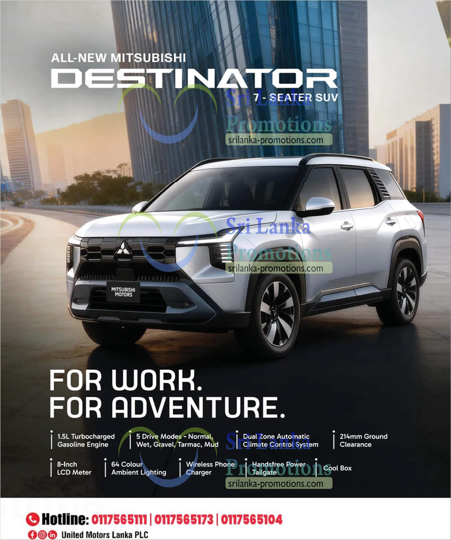 United Motors Lanka PLC is spotlighting the all-new Mitsubishi Destinator for families and professionals who want one SUV that can handle weekday commutes and weekend escapes – “For Work. For Adventure.” 😊