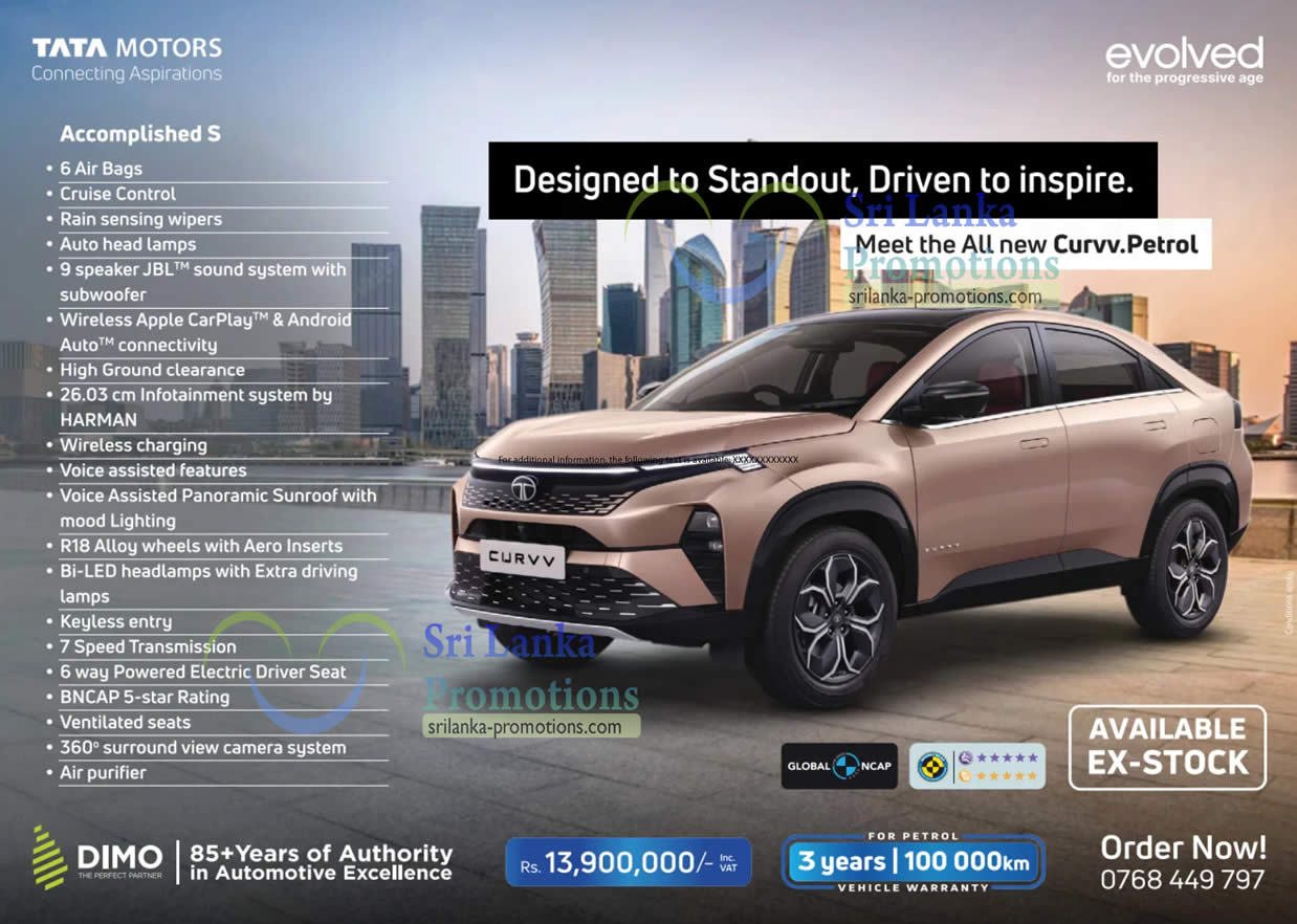 DIMO, the authorised distributor for Tata Motors in Sri Lanka, has immediate ex-stock availability of the all-new Tata Curvv Petrol – Accomplished S grade.