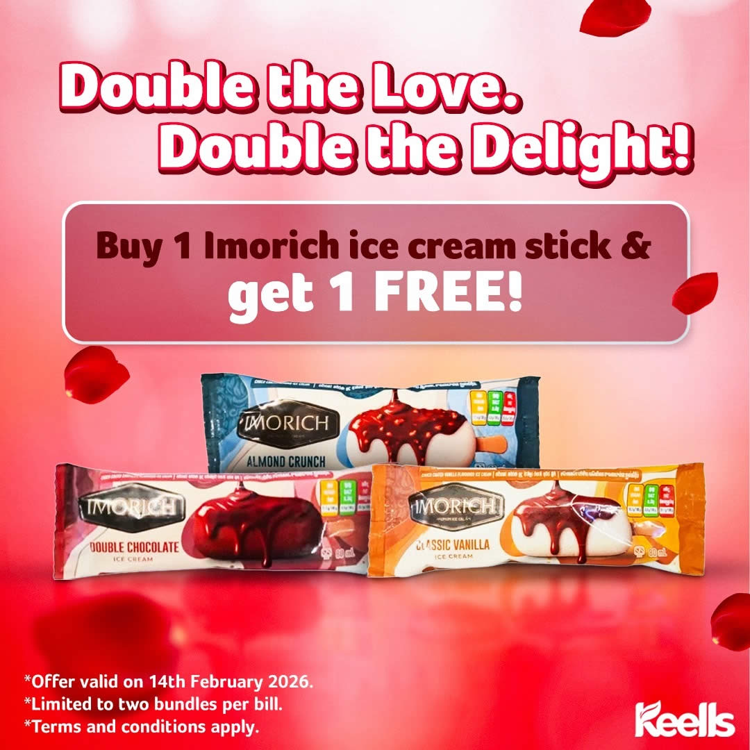 Valentine’s Day comes just once a year – and sweet moments deserve to be celebrated in style. With Keells’ Buy 1 Get 1 FREE Imorich Ice Cream Stick offer, every purchase brings double happiness and double flavour. Mark the date, visit the nearest Keells outlet, and make 14th February 2026 extra special with a creamy delight! 🍦💝