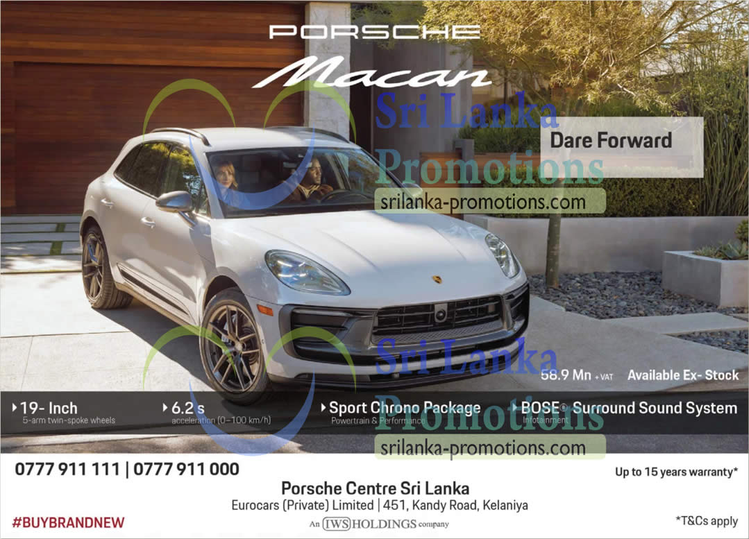 The iconic Porsche Macan makes a bold statement on Sri Lankan roads with an offer from Porsche Centre Sri Lanka, operated by Eurocars (Private) Limited in Kelaniya. Designed for those who appreciate precision engineering, luxury comfort and dynamic performance, this premium SUV invites discerning motorists to truly Dare Forward 😊✨.